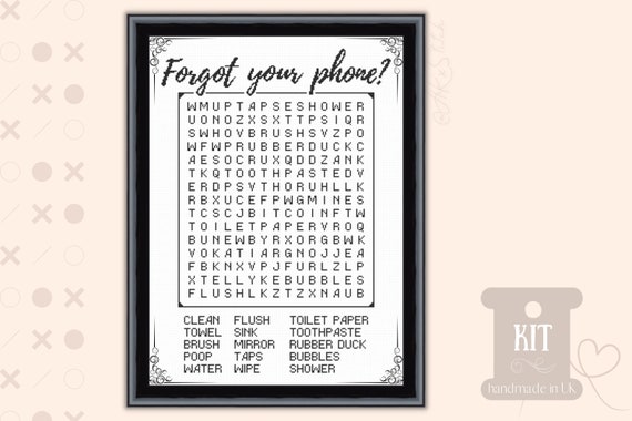 Bathroom Cross Stitch Kit Puzzle Word Search Crossword Game Etsy